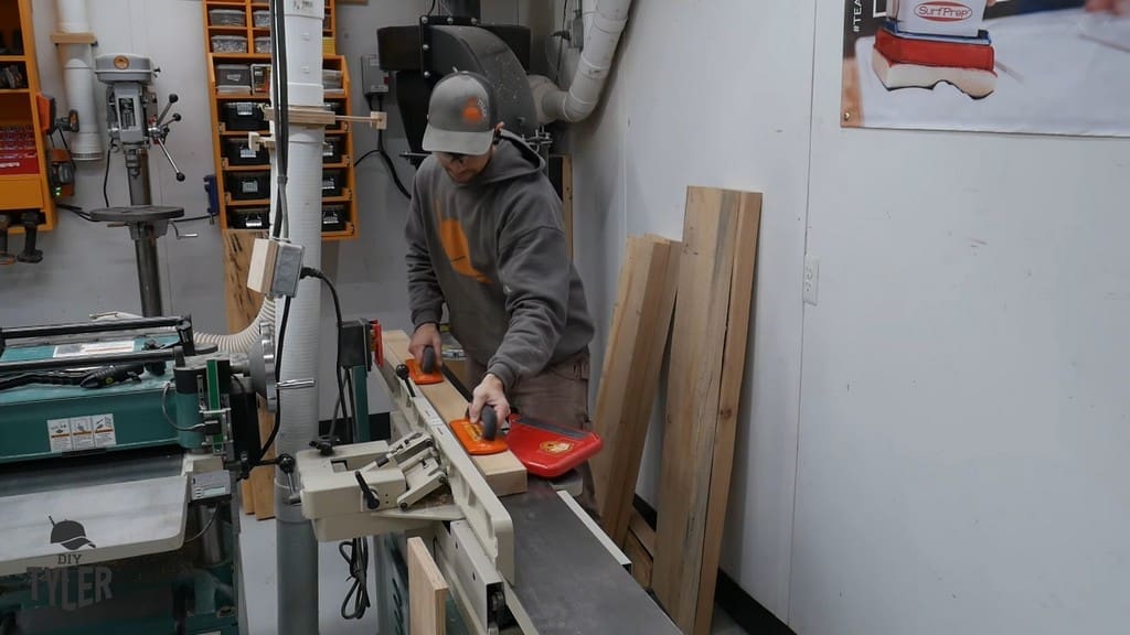 I flattened two sides on the jointer before moving the board over to the planer. There, I reduced everything down to the same thickness.