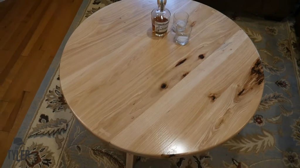 Today’s article focuses on my creation of this beautiful DIY round coffee table. If you want to know how I made the sweet “tripod” joint for it, check out one of my previous videos.